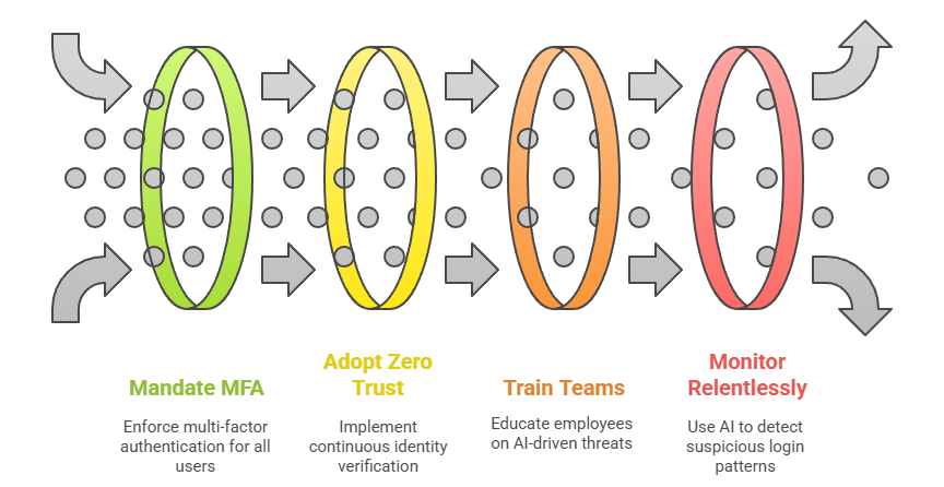 4. Monitor Relentlessly: Deploy AI-powered threat detection to flag suspicious login patterns in real time.